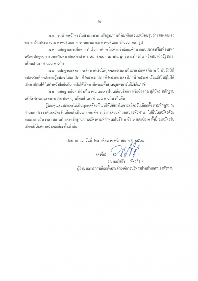 (ไม่เว้นวันหยุดราชการ) ณ ที่ทำการองค์การบริหารส่วนตำบลหนองหัวฟาน