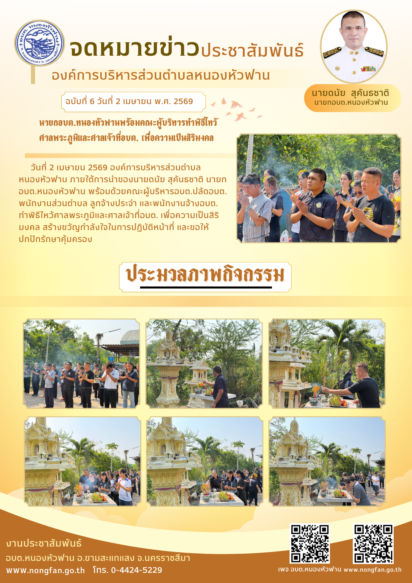 องค์การบริหารส่วนตำบลหนองหัวฟาน ภายใต้การนำของ นายดนัย สุคันธชาติ นายกองค์การบริหารส่วนตำบลหนองหัวฟาน ขอเผยแพร่ ข้อมูล ข่าวสาร กิจกรรม ผลการดำเนินงาน จดหมายข่าวฉบับวันพฤหัสบดีที่ 2 เมษายน 2569