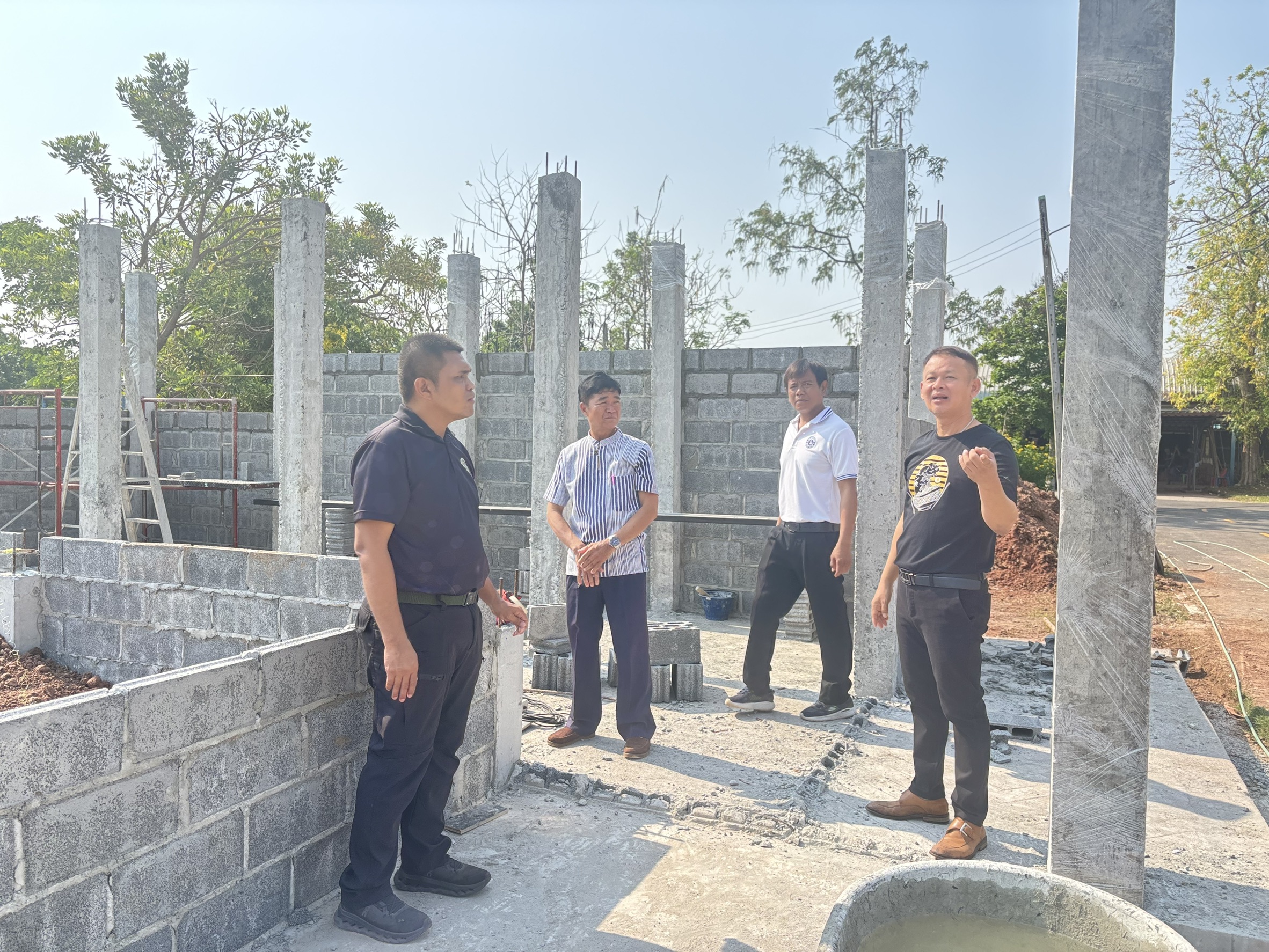 นายกอบต.ตรวจเยี่ยมความคืบหน้าของงานก่อสร้างอาคารเอ...