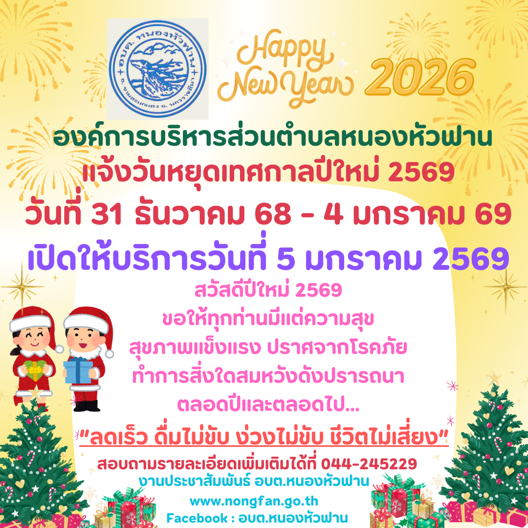 แจ้งวันหยุดเทศกาลปีใหม่ 2569