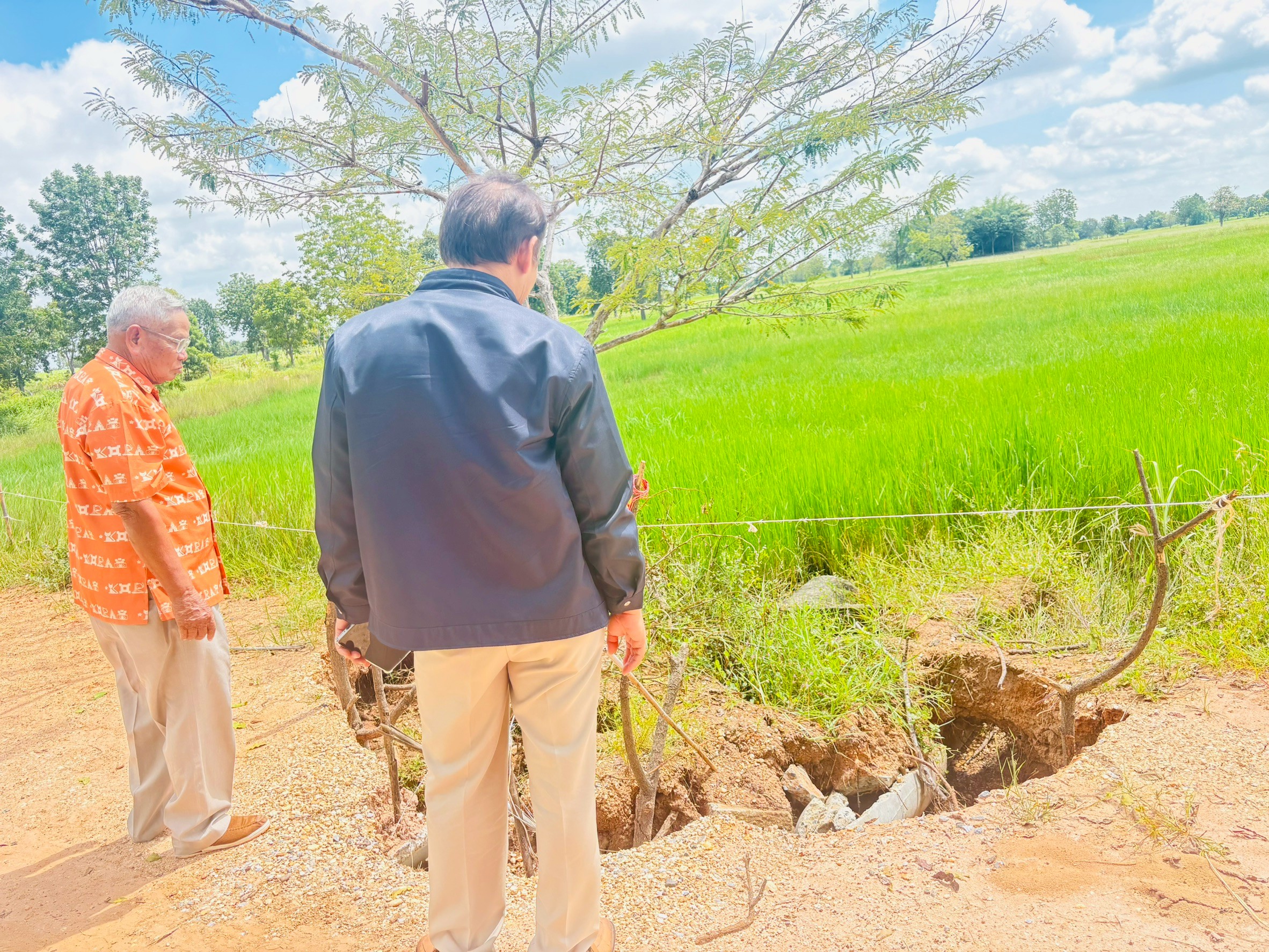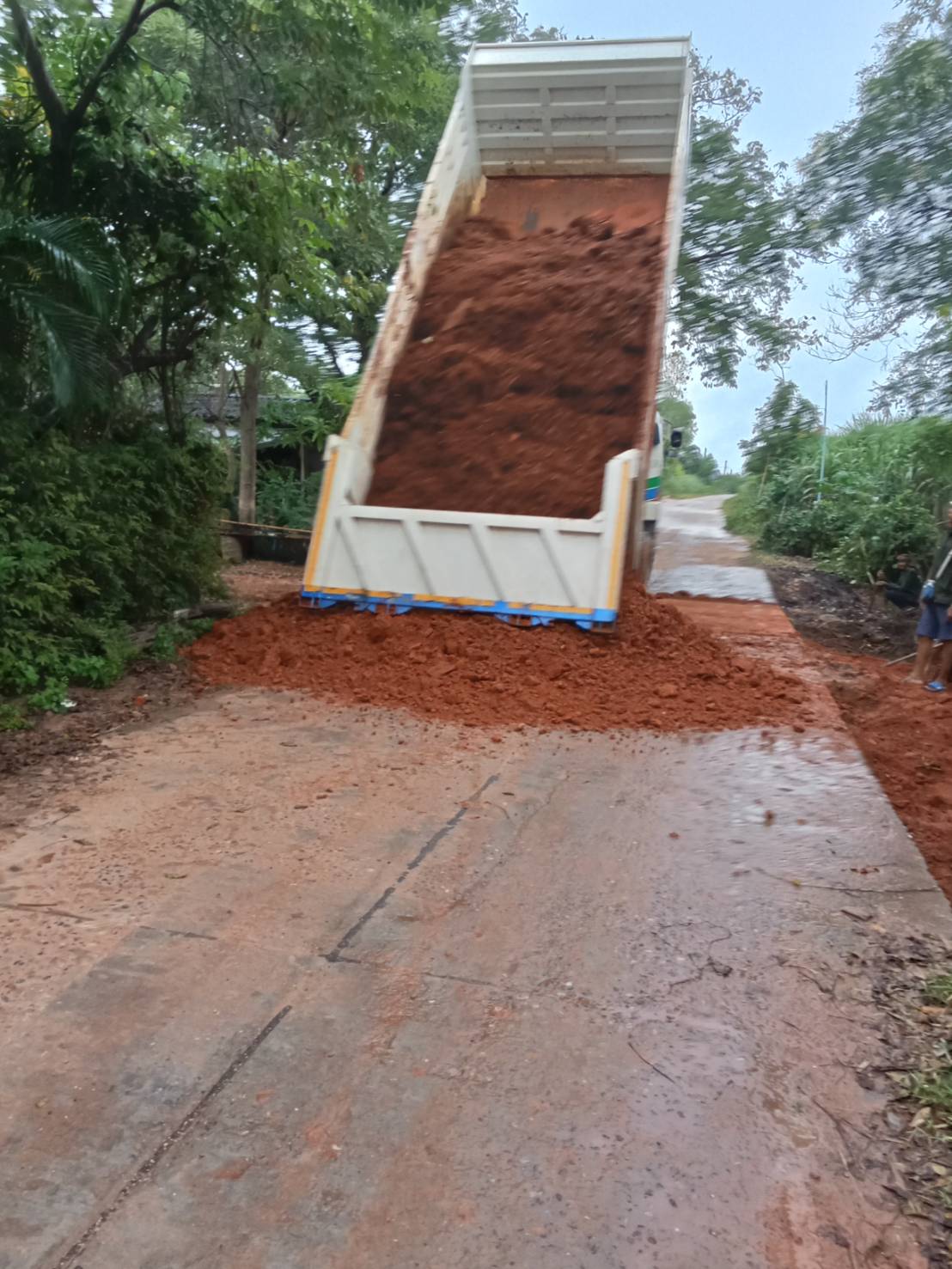ได้ดำเนินการแก้ไขเบื้องต้นแล้ว โดยถมดินถนนที่ขาด ห...