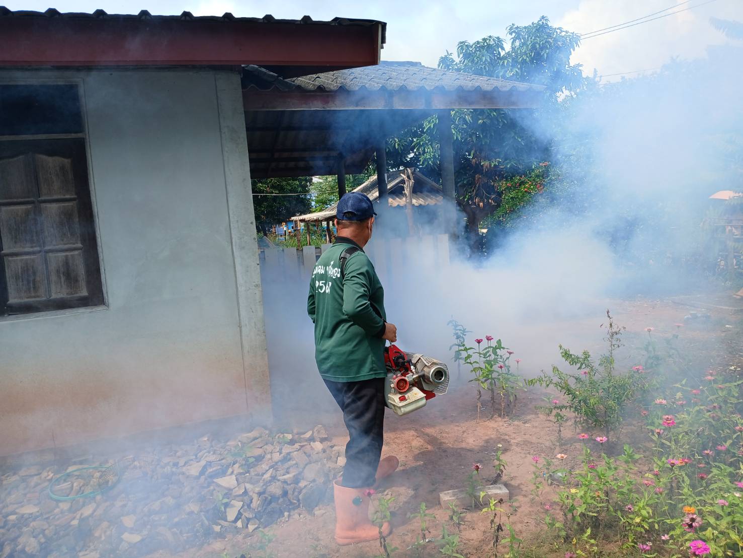 ดำเนินการฉีดพ่นสารเคมีและป้องกันโรคไข้เลือดออก ครั...