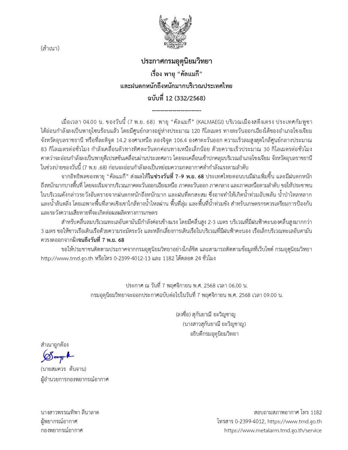 ขอให้ประชาชน ระวังอันตรายจากฝนตกหนักถึงหนักและฝนที...