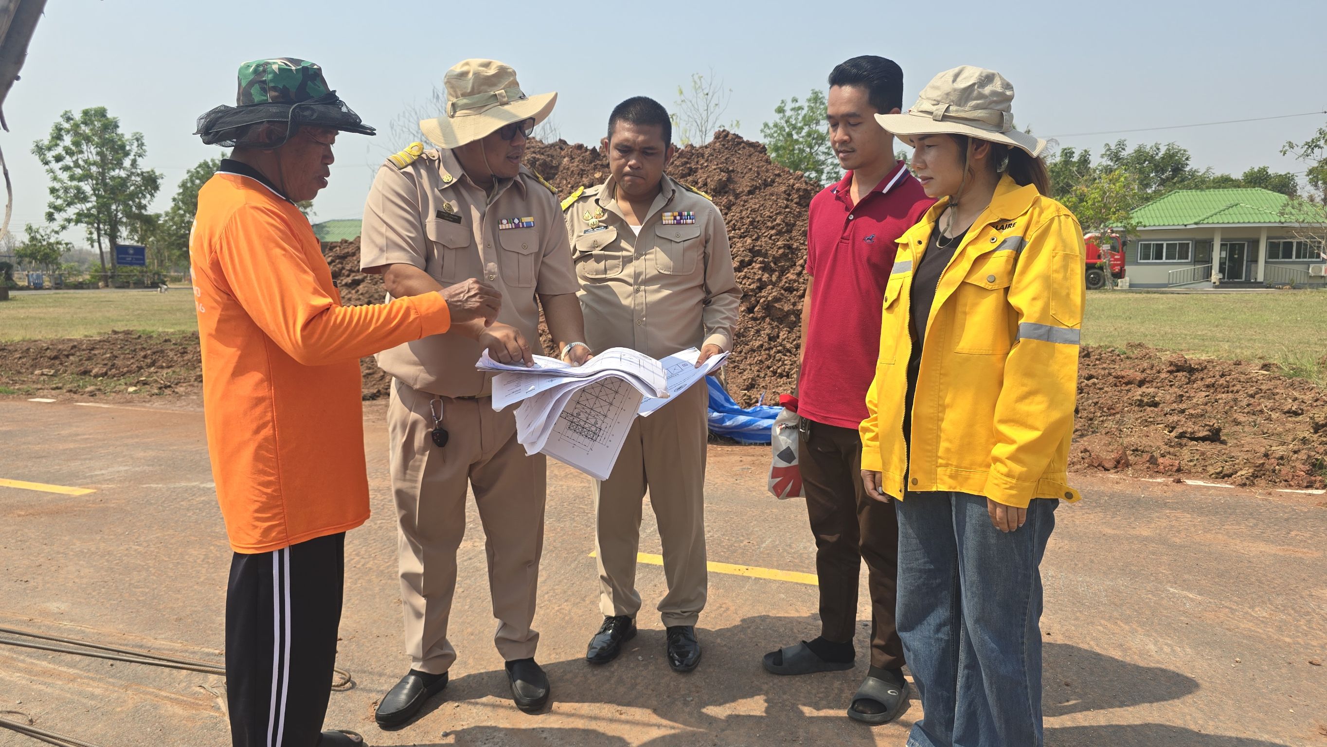 นายกอบต.ติดตามงานก่อสร้างอาคารเอนกประสงค์งานป้องกั...