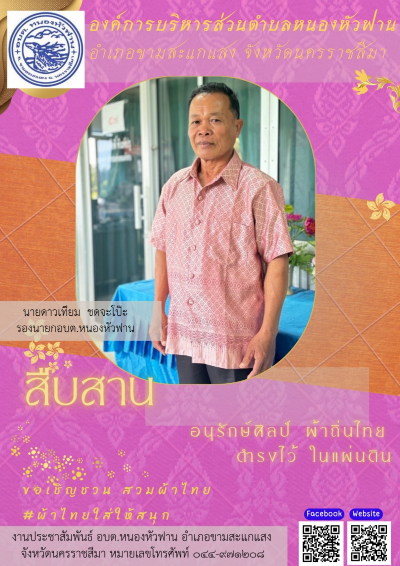 องค์การบริหารส่วนตำบลหนองหัวฟานร่วมอนุรักษ์ศิลป์ ผ้าถิ่นไทย ดำรงไว้ในแผ่นดิน และขอเชิญท่านสวมใส่ผ้าไทย ประจำปี 2567