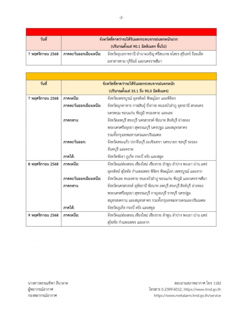 #ข้อควรระวัง ขอให้ประชาชน ระวังอันตรายจากฝนตกหนักถึงหนักและฝนที่ตกสะสม สำหรับเกษตรกรควรเตรียมการป้องกันและระวังความเสียหายที่จะเกิดต่อผลผลิตทางการเกษตรไว้ด้วย