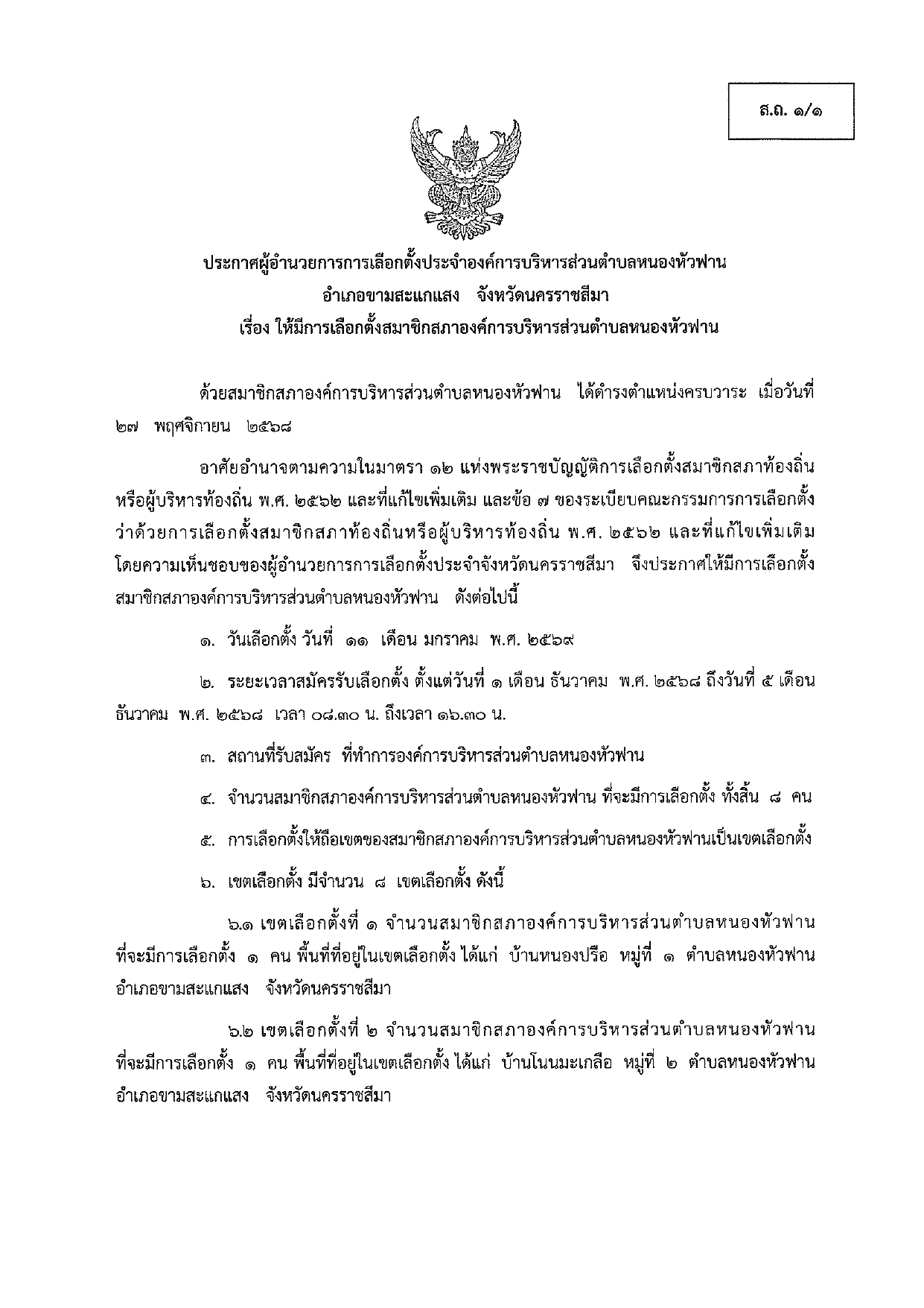 กำหนดวันเลือกตั้งในวันอาทิตย์ ที่ 11เดือน มกราคม พ.ศ. 2569 ตั้งแต่เวลา 08.00 น. - 17.00 น.