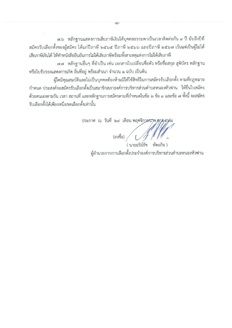 ประกาศรับสมัครเลือกตั้งสมาชิกสภาองค์การบริหารส่วนตำบลหนองหัวฟาน